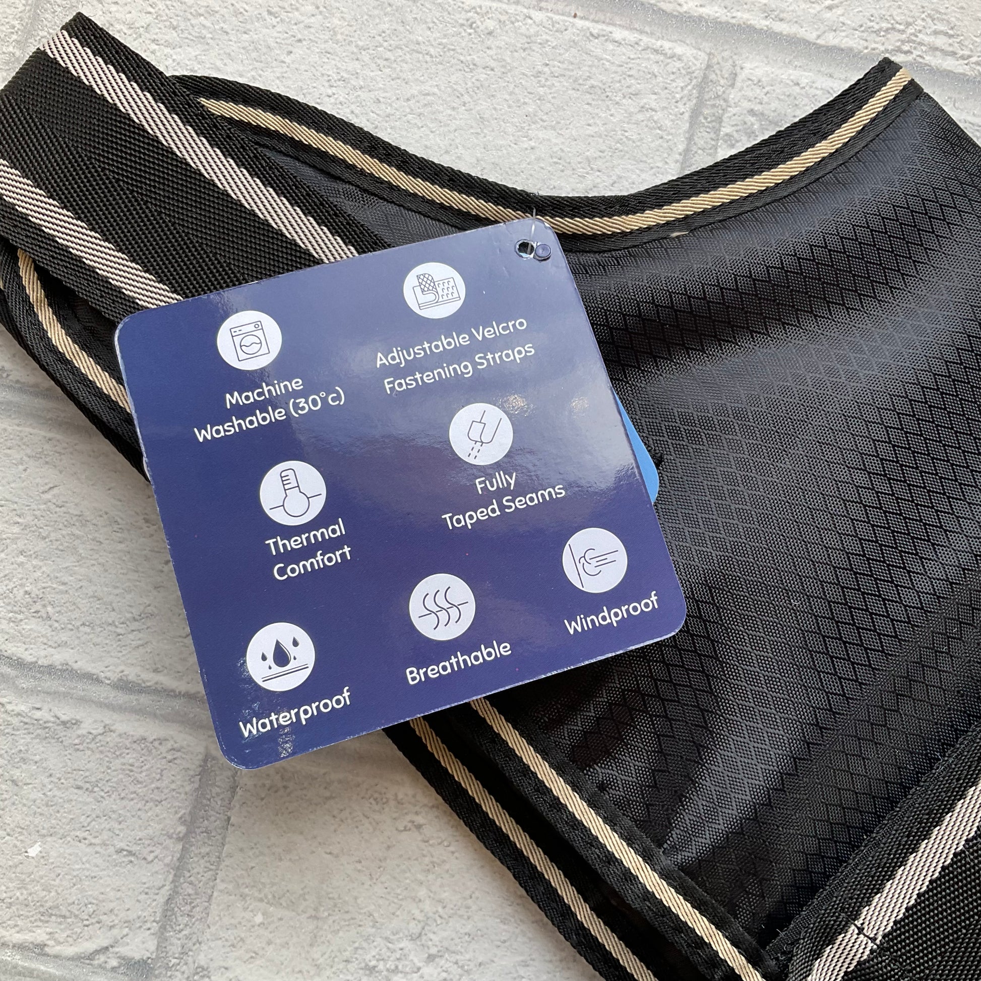 This padded waterproof dog coat has velcro fittings.
