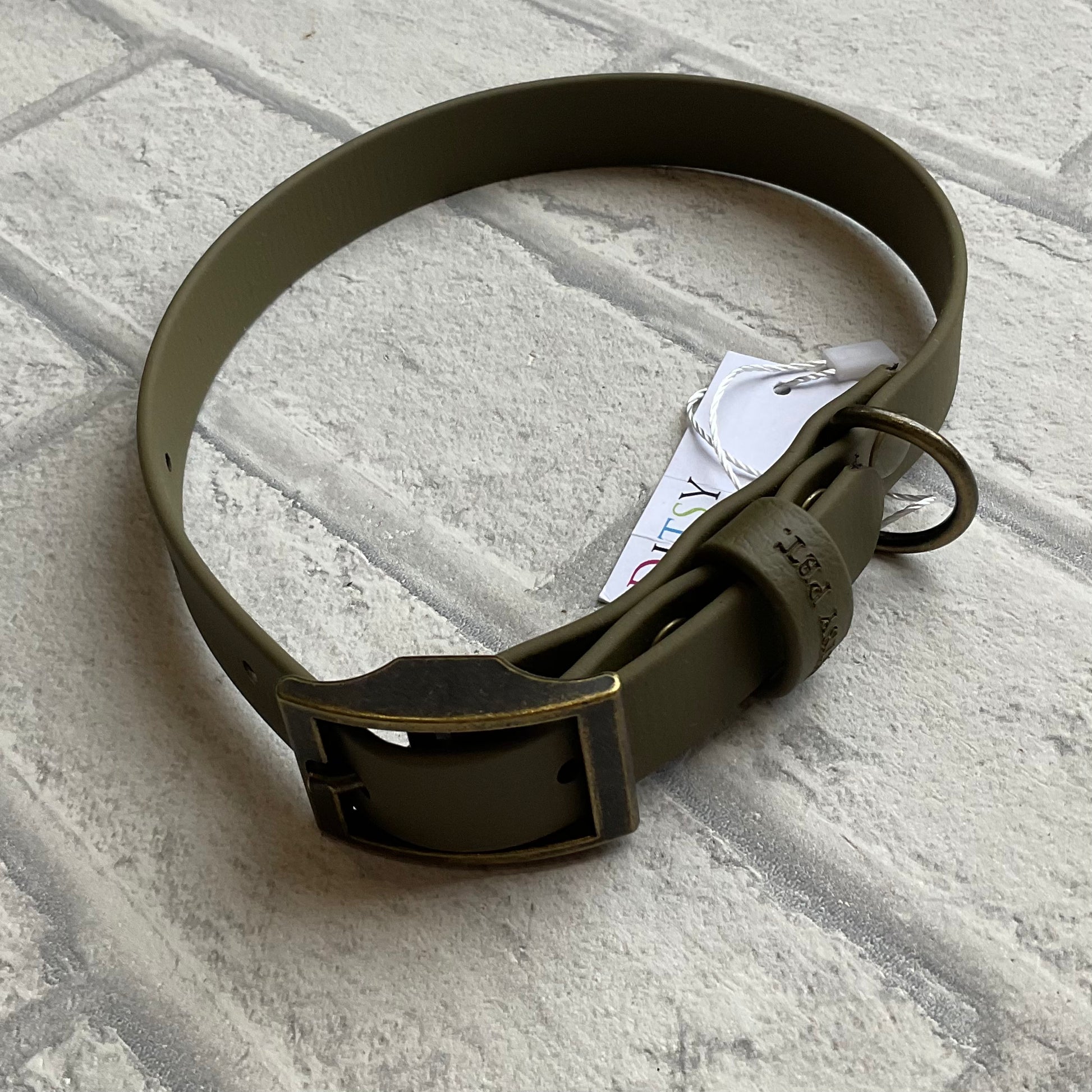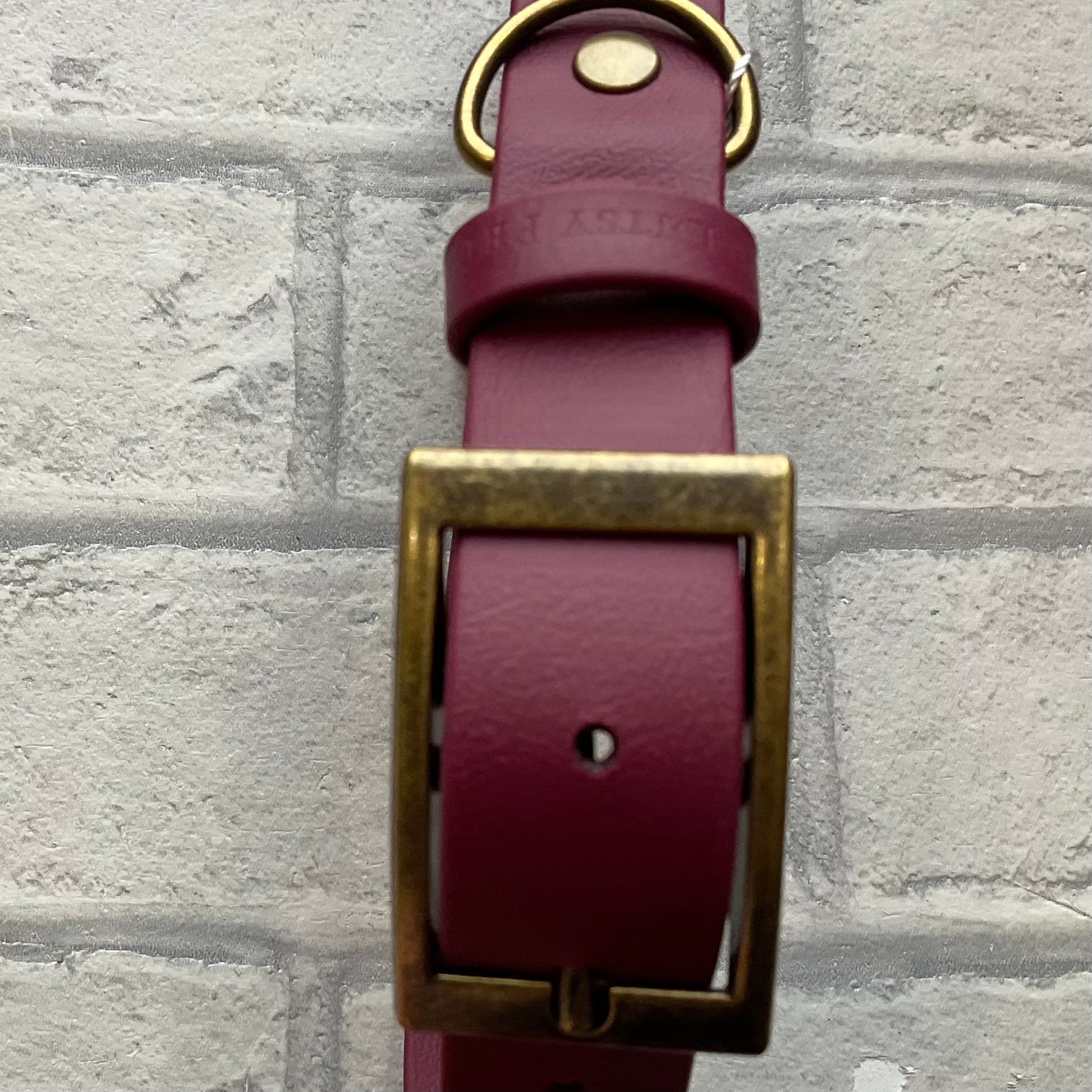 Ditsy Pet Biothane collars are made locally in Nottingham using antique brass hardware. All sizes are made with a keeper loop so that any excess collar can be tucked away neatly.