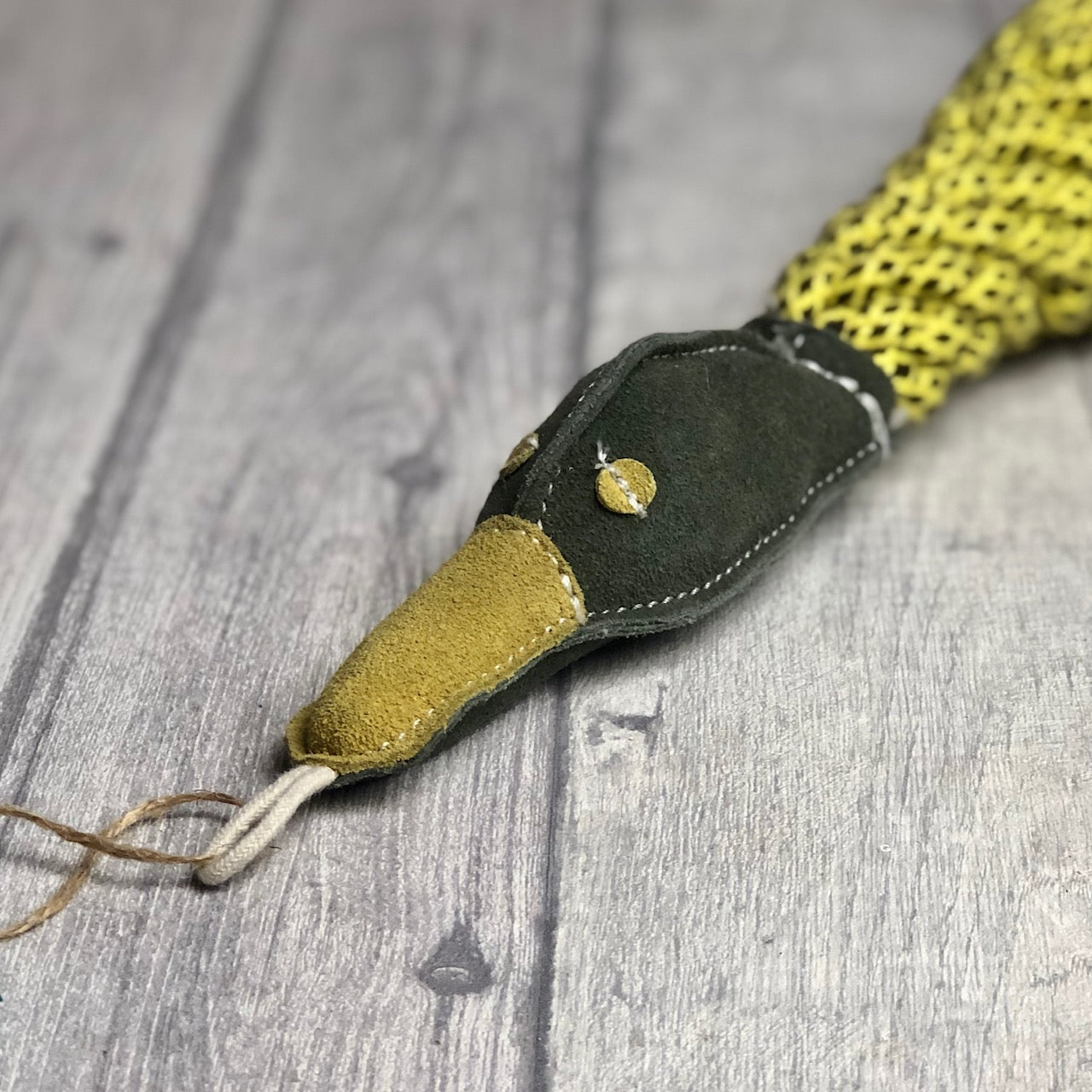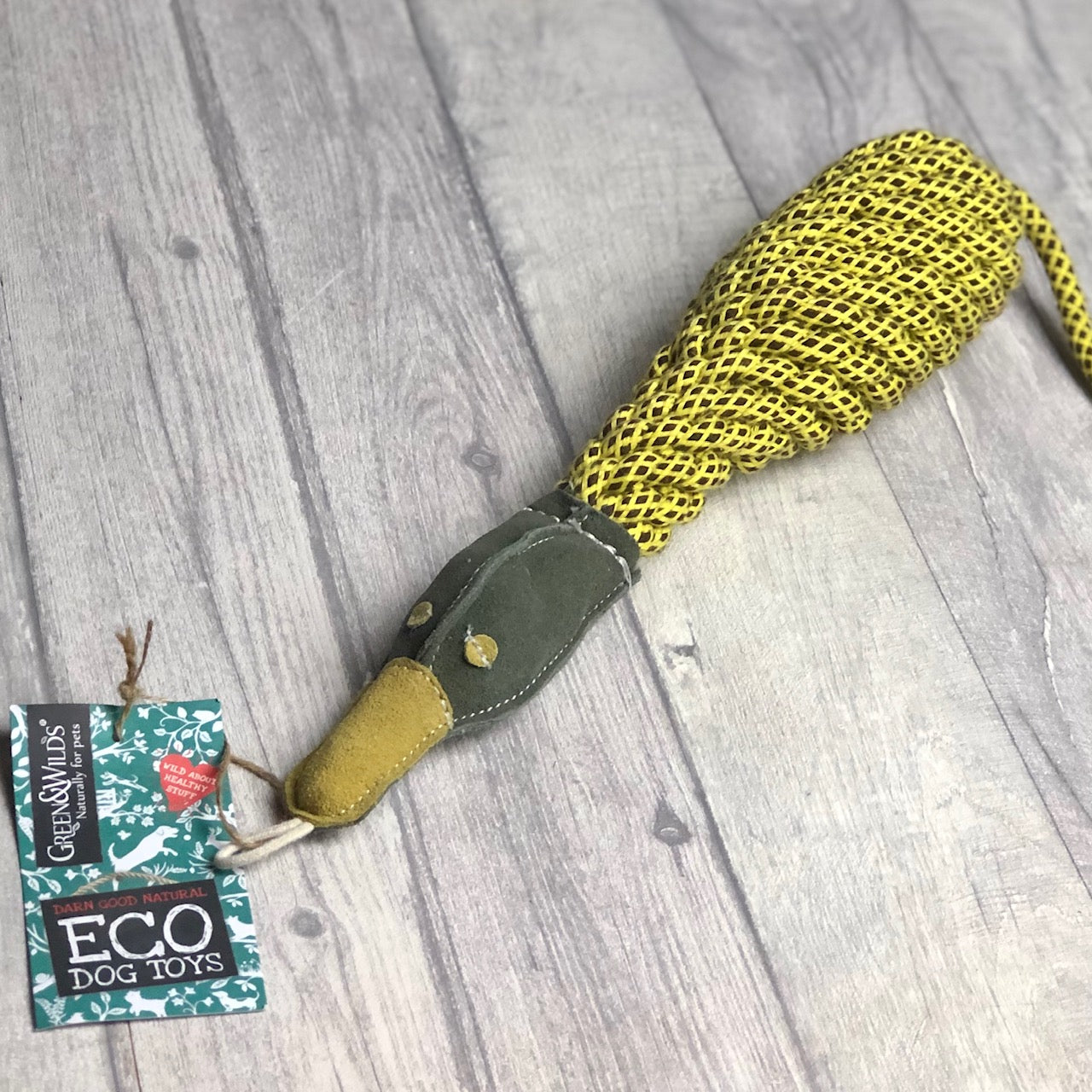 Delilah the Duckess is a fun addition to any dogs toy box, made with suede and knotted jute rope over a recycled bottle. You and your dog can have hours of fun whilst being safe in the knowledge that it is made from natural, renewable and recyclable materials.