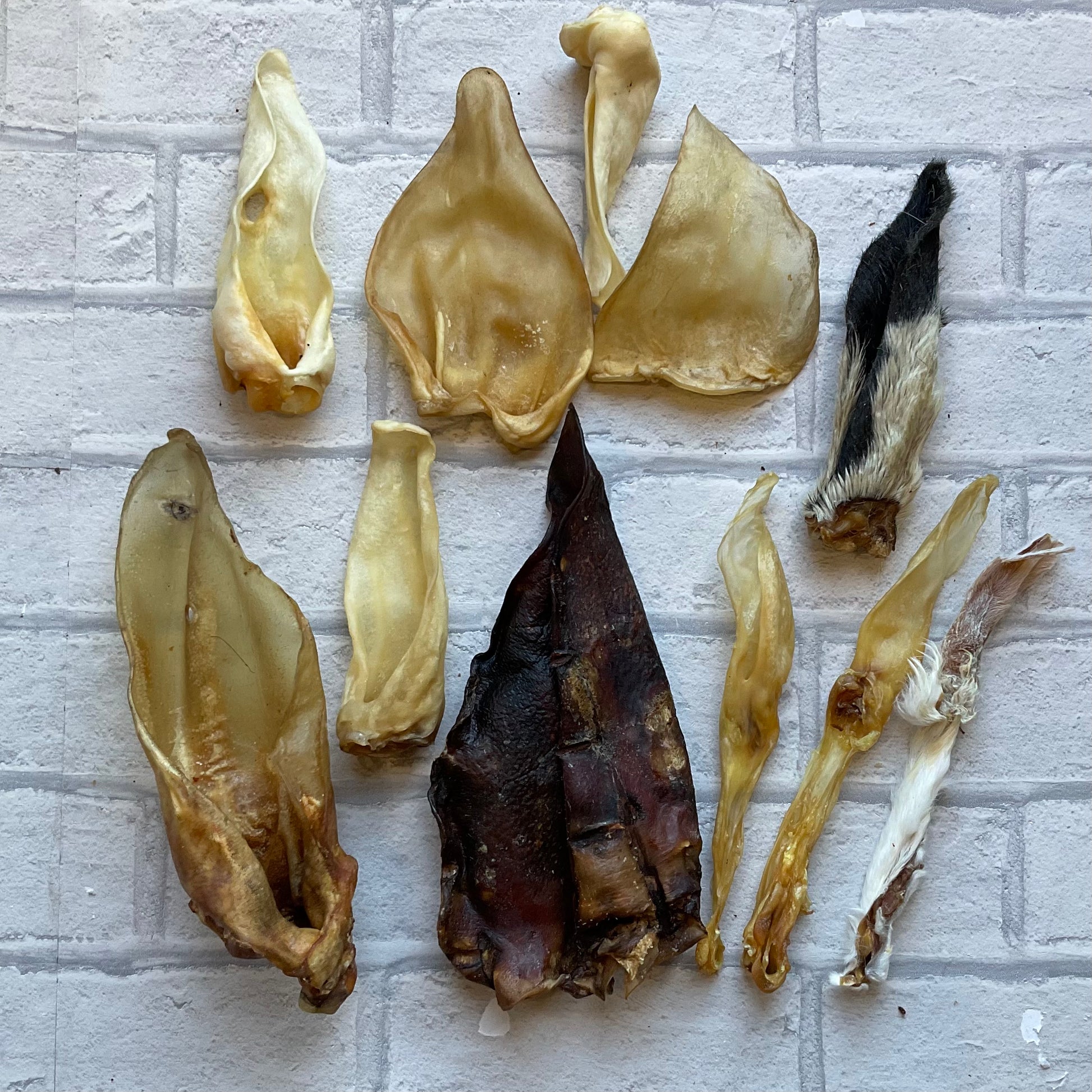 A mixed selection of Ears from the Doggy Deli, a great way to introduce these natural air dried treats to your pup. The 'Ear Ear' Natural Treat Boredom Box contains: