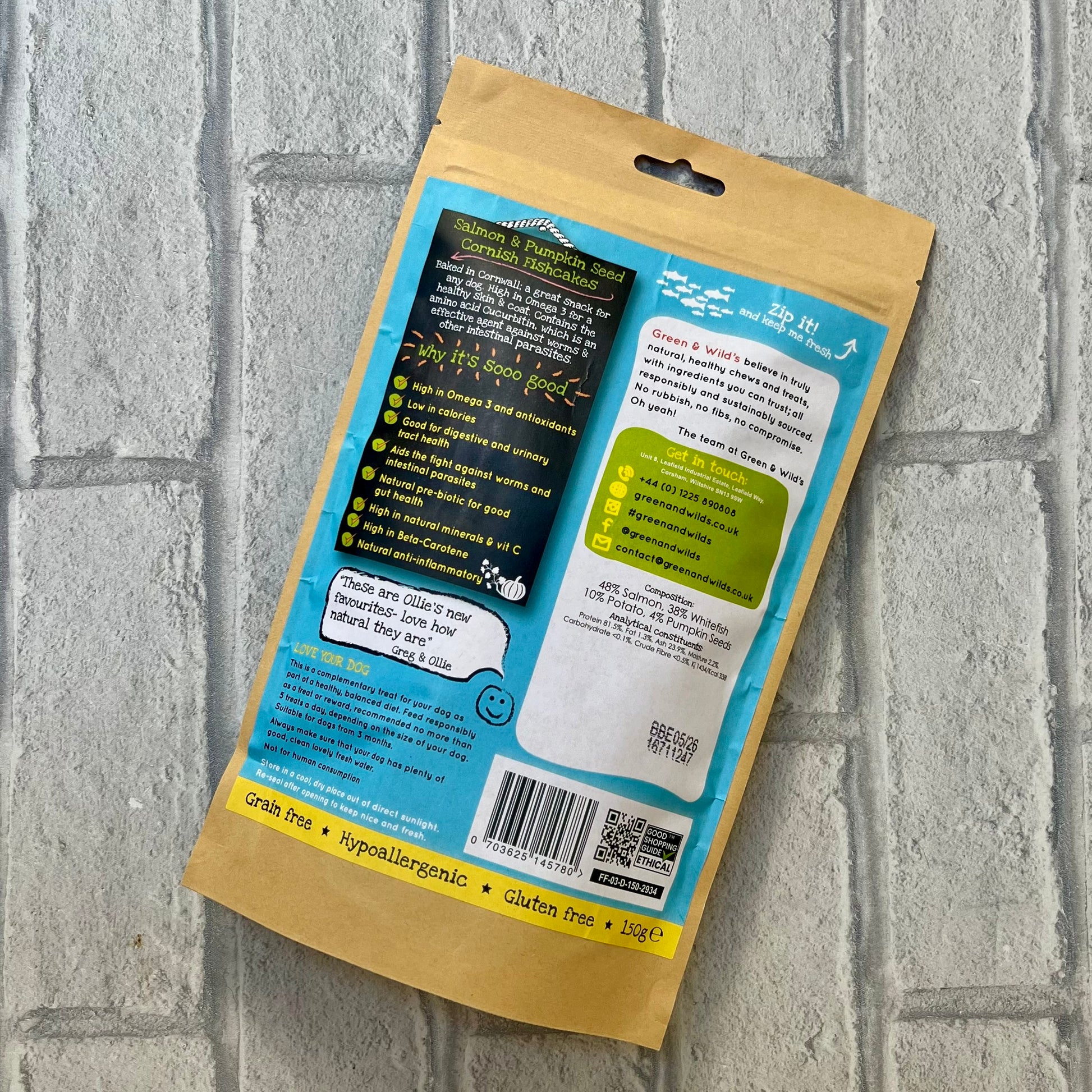 Baked in Cornwall; a great snack for any dog. High in Omega 3 for a healthy skin and coat. Contains the amino acid Cucurbitin which is an effect agent against worms and other intestinal parasites. 100% natural and tasty.