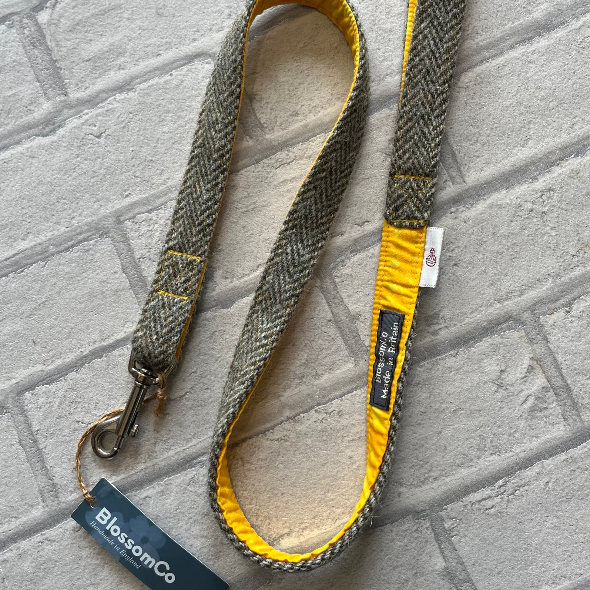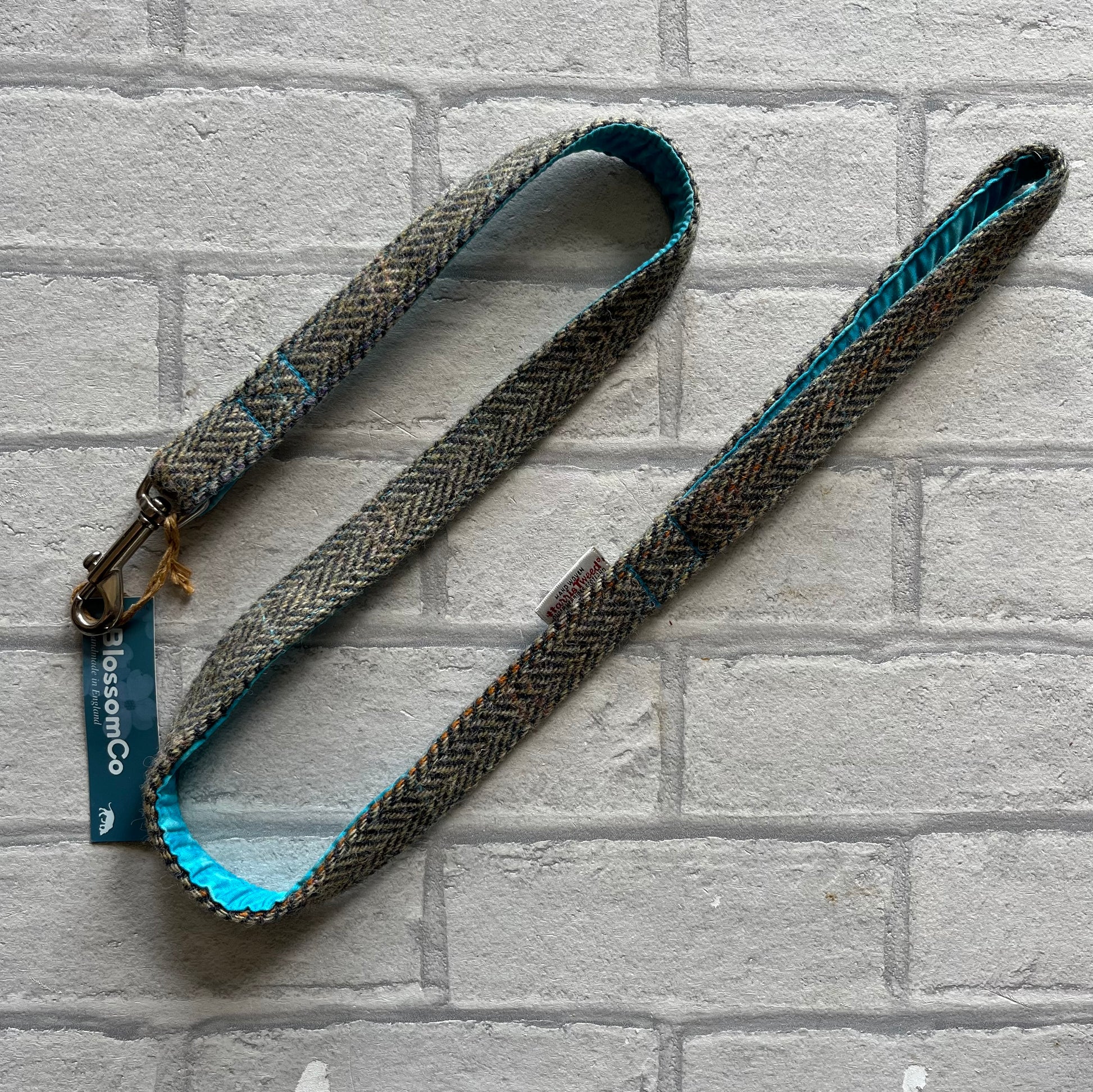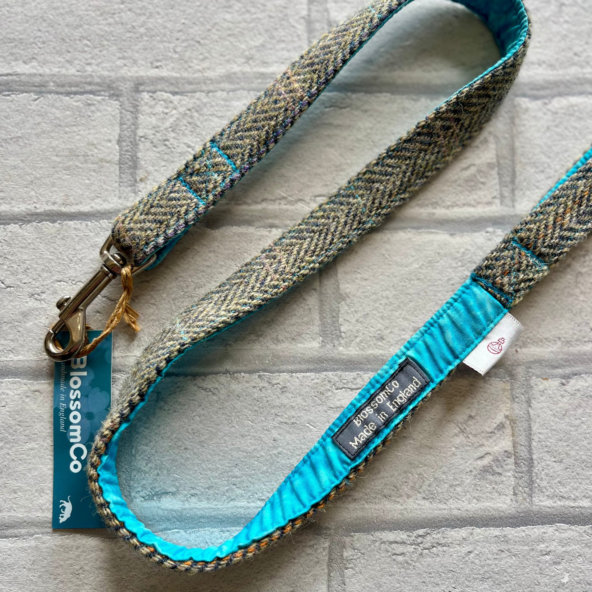 These ‘Blossom Co’ Harris Tweed leads are beautifully handmade in England. The 100% Wool outer and 100% Cotton lined lead is available in 2 colour ways, Turquoise lined or Gold.