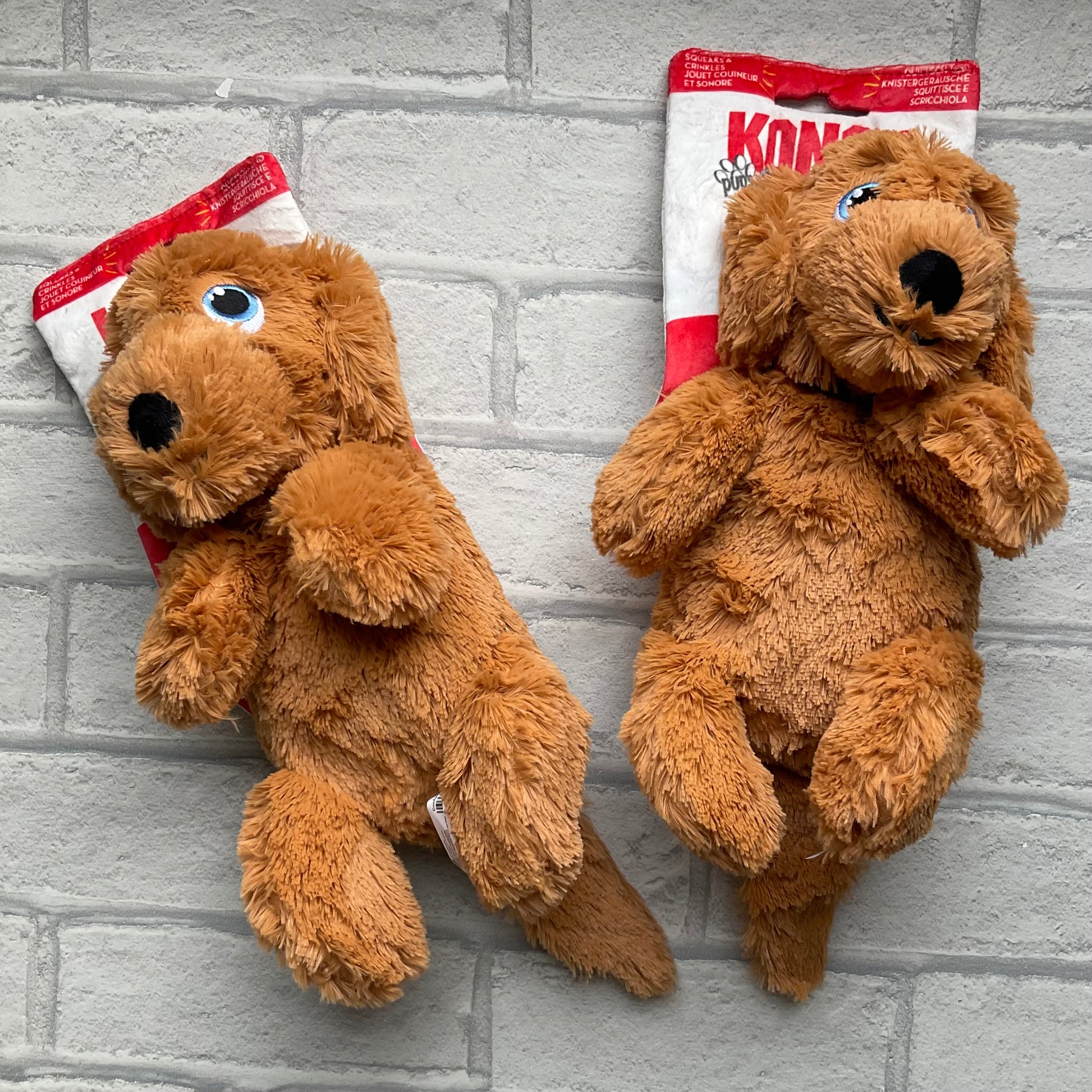 The KONG Comfort Goldie Dog is a soft and luxuriously cuddly plush toy great for snuggle time comfort. The packaging is a toy on its own so your pup gets two toys in one! Goldie is super cute!