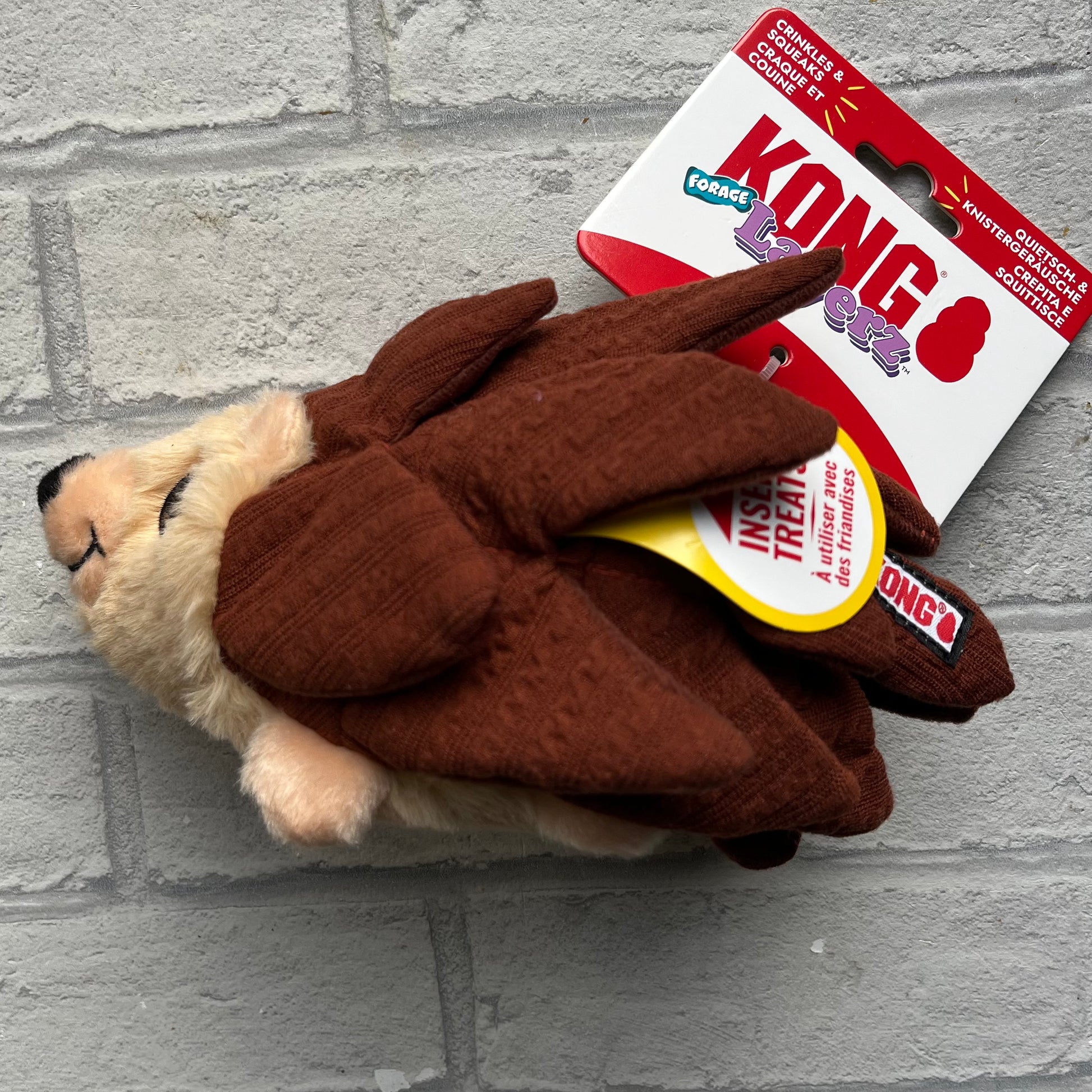 The KONG Layerz Forage is a soft, crinkly and squeaky toy. Hide treats under each of the hedgehogs ‘spikes’ to stimulate foraging instincts!