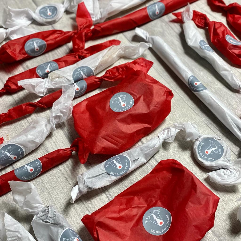 Venison Burger, Goats Ear, 2 Braided Beef Skin, Duck Neck, 2 Chicken Feet, Wild Boar Strip, Pheasant & Partridge Sausage, 2 Lambs Ear, 2 Turkey & Cranberry Sausages, Lamb Twist, Cows Ear, Rabbit Burger, Duck Foot, Rabbit Ear, Puffed Chicken Foot, Duck Sausage, Beef Tail, Pheasant & Partridge Burger, Tripe Stick, Venison Strip,