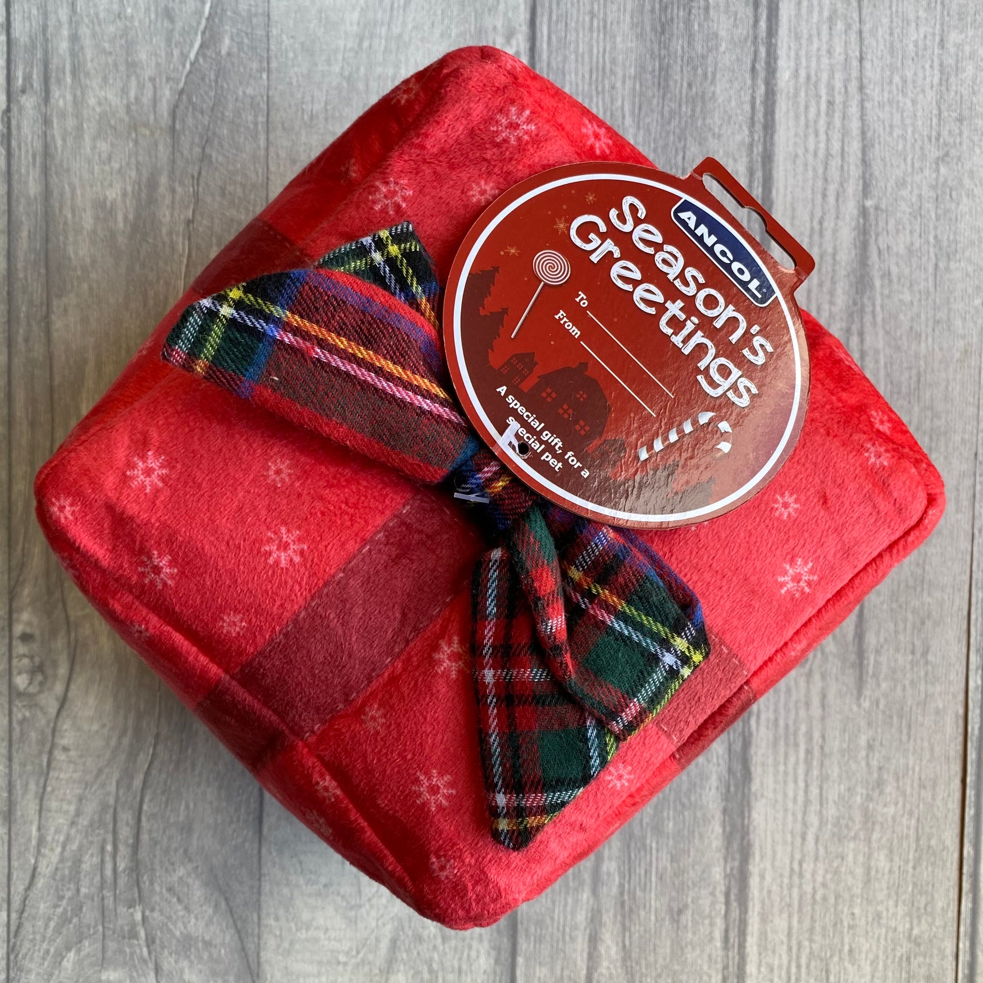 Who doesn't love presents under the tree? This one will certainly make your dog pleased to see it. The 'Merry Woofmas' message and tartan bow make this squeaky square gift a fun toy they'll love.