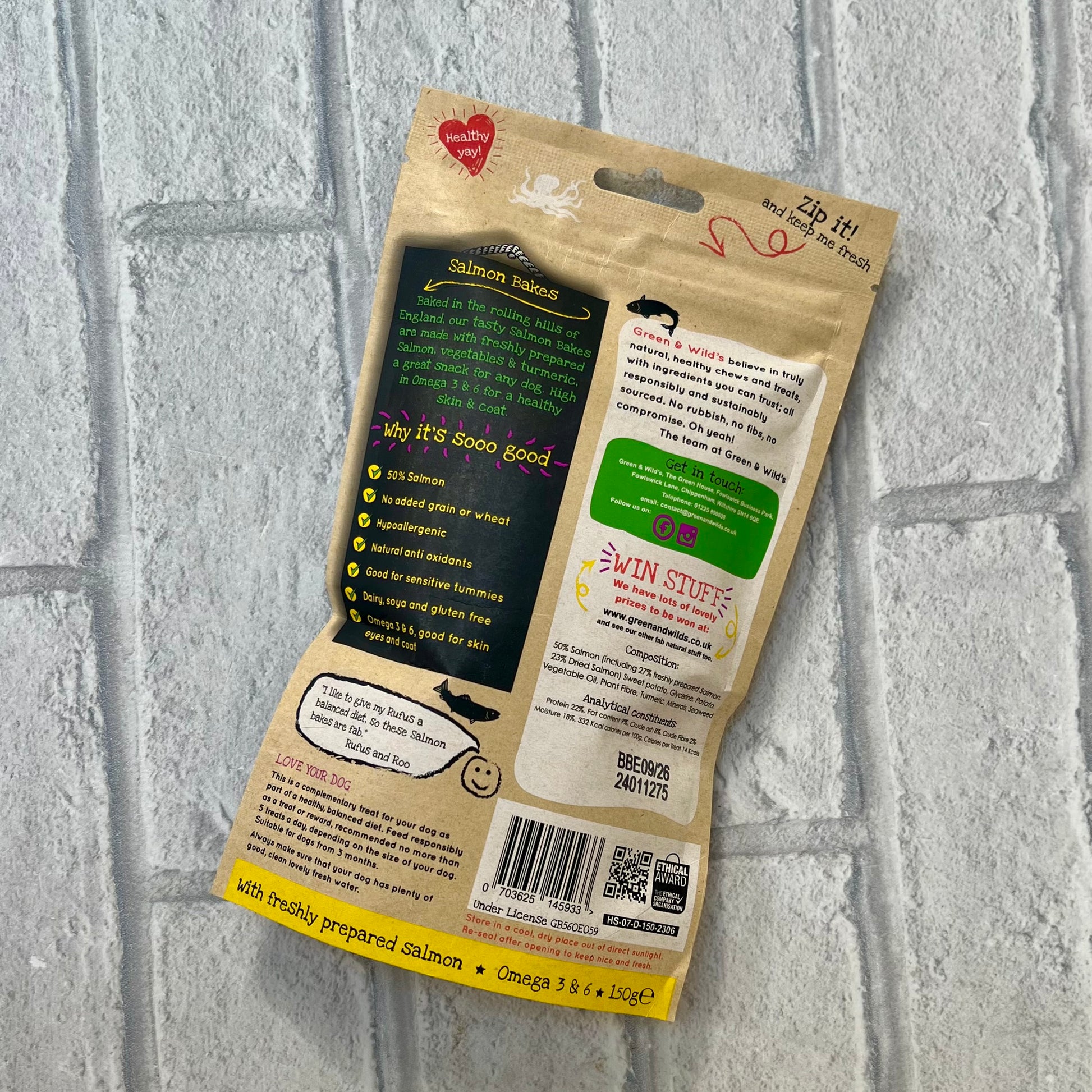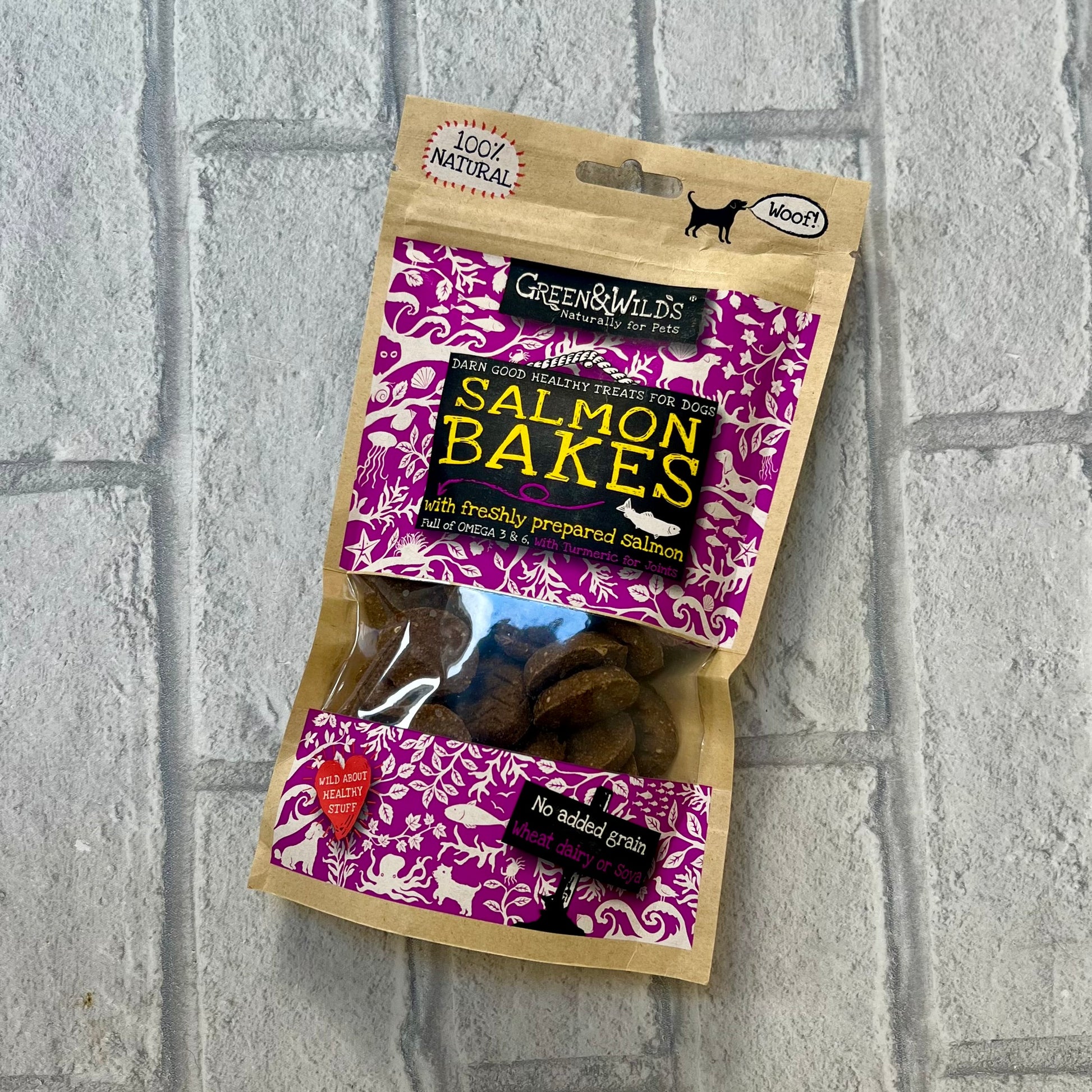 Baked in the rolling hills of England and are made with 50% Salmon, Veg and turmeric, a great snack for any dog, high in Omega 3 & 6 for a healthy skin and coat.